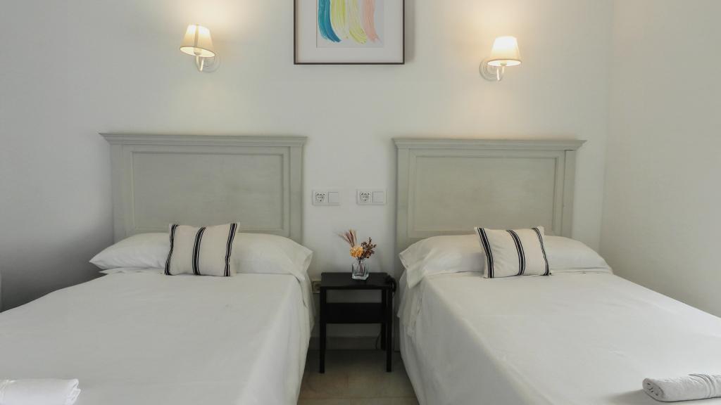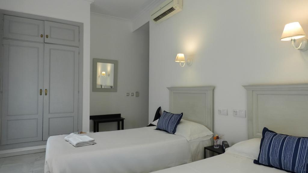 Hotel pequeño, pero con mucho encanto situado en el centro. Todas las habitaciones cuentan con lo básico que esperas de un hotel, además las habitaciones dobles y triples cuentan con un bonito balcón. El patio interior se ha convertido en una biblioteca con sus sillones y mesas, en las que pasar la sobremesa leyendo o charlando cómodamente. Los baños son tienen duchas amplias y secador de pelo. Muy destacable el estado de limpieza de las habitaciones. Sin grandes lujos es un hotel acogedorlimpio y con mucho encanto. Totalmente recomendable.